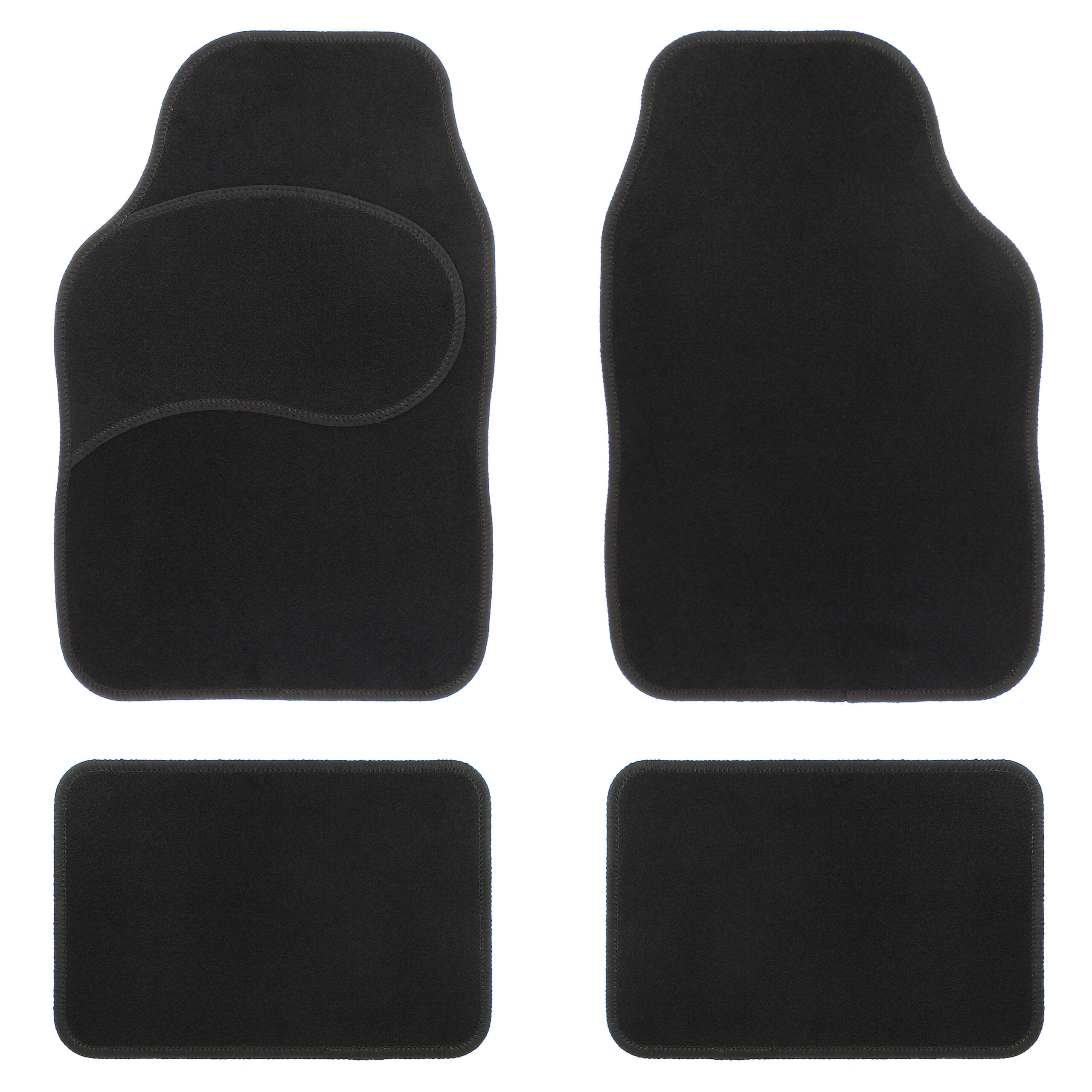 Pack universal de 4 alfombrillas de moqueta con detalle de linea, en un solo acabado para hacer posible la protección del suelo de tu coche. Este conjunto esta formado por dos alfombrillas delanteras y dos alfombrillas traseras. Con estas alfombrillas podrás evitar que tu vehículo se ensucie de forma constante así como podrás darle un toque personal.
