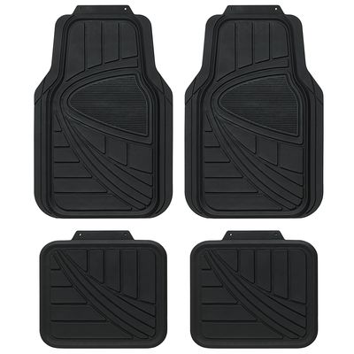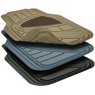 Conjunto universal de cuatro alfombrillas recortables en tres acabados para el coche, fabricadas con caucho resistente para una mayor durabilidad y un mejor lavado.