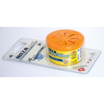 Ambientador absorbe-olores que elimina el mal olor del tabaco, la comida o algún olor externo. La tecnología utilizada en este ambientador permite eliminar las sustancias del ambiente ya que reacciona neutralizándolas y sustituyéndolas por moléculas de buen olor. Gracias a este ambientador, el mal olor dejará de provocarte mareos o dolores de cabeza, así como su perfume agradable permitirá que la conducción sea más amena. Este ambientador en diferente aroma (aroma de california sun, monoi, algodón de azúcar, neutralizador de olor o nuevo coche), se encuentra en una lata de aluminio con tapa regulable para abrirla o cerrarla cuando se desee, sus pastillas permiten una difusión de más de 90 días. ¡Elige el tuyo!