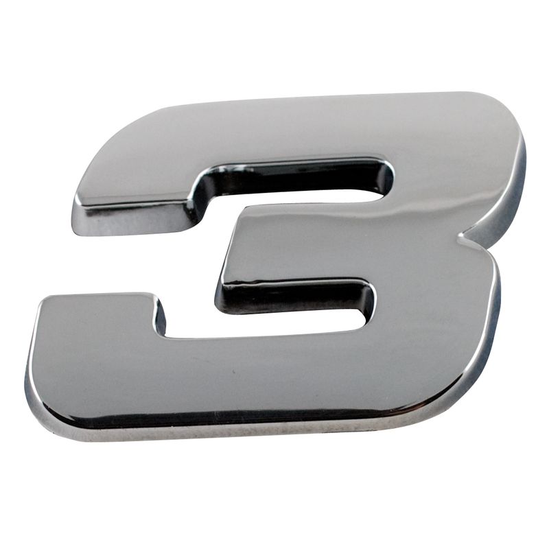 Emblema de Símbolo 3 , ideal para colocarlo en el trasero ACCESORIOS DE EXTERIOR del vehículo. Gracias a su base adhesiva el pegado resultará de gran efectividad pasadas las 24h, por ello no se recomienda realizar ningún lavado e impedir el mojado. Este emblema le dará a tu vehículo el aspecto deseado, gracias a su acabado cromado.