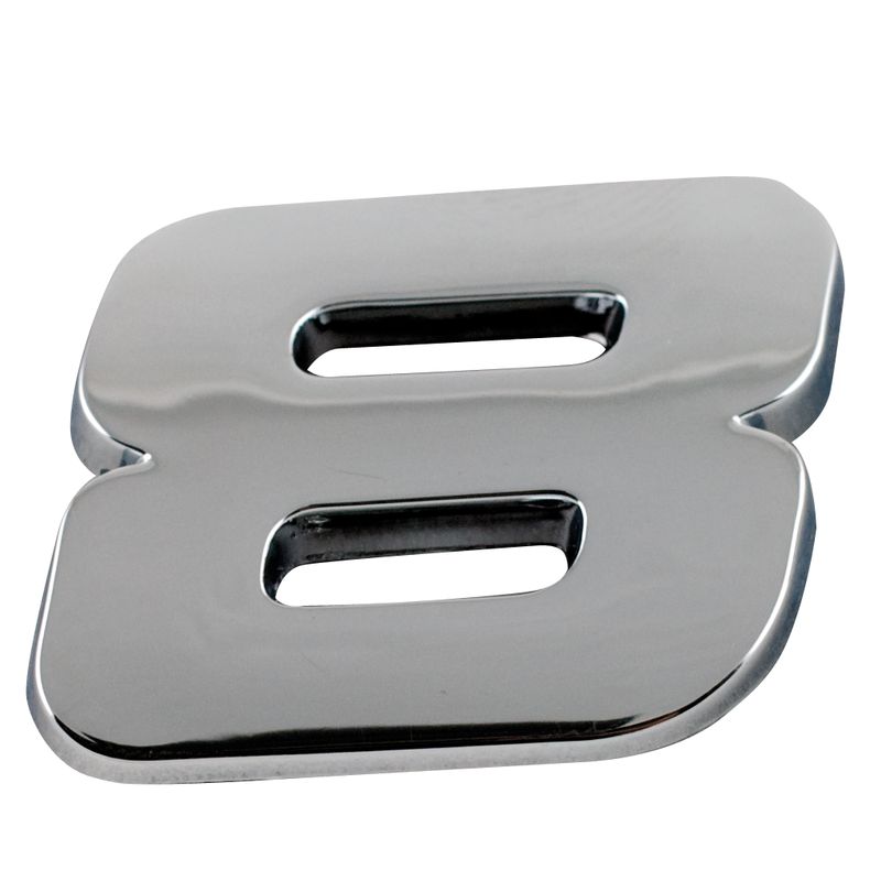 Emblema de Símbolo 8 , ideal para colocarlo en el trasero ACCESORIOS DE EXTERIOR del vehículo. Gracias a su base adhesiva el pegado resultará de gran efectividad pasadas las 24h, por ello no se recomienda realizar ningún lavado e impedir el mojado. Este emblema le dará a tu vehículo el aspecto deseado, gracias a su acabado cromado.