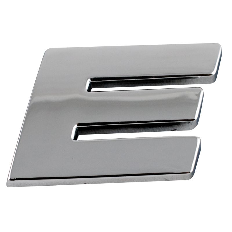 Emblema Símbolo E cromado con base adhesiva, ideal para colocarlo en la parte lateral ACCESORIOS DE EXTERIOR del vehículo. Su fabricación con material ABS favorece la impermeabilidad y durabilidad en el vehículo.