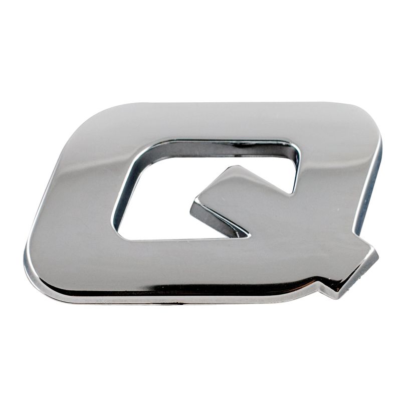 Emblema de Símbolo Q, ideal para colocarlo en el trasero ACCESORIOS DE EXTERIOR del vehículo. Gracias a su base adhesiva el pegado resultará de gran efectividad pasadas las 24h, por ello no se recomienda realizar ningún lavado e impedir el mojado. Este emblema le dará a tu vehículo el aspecto deseado, gracias a su acabado cromado.