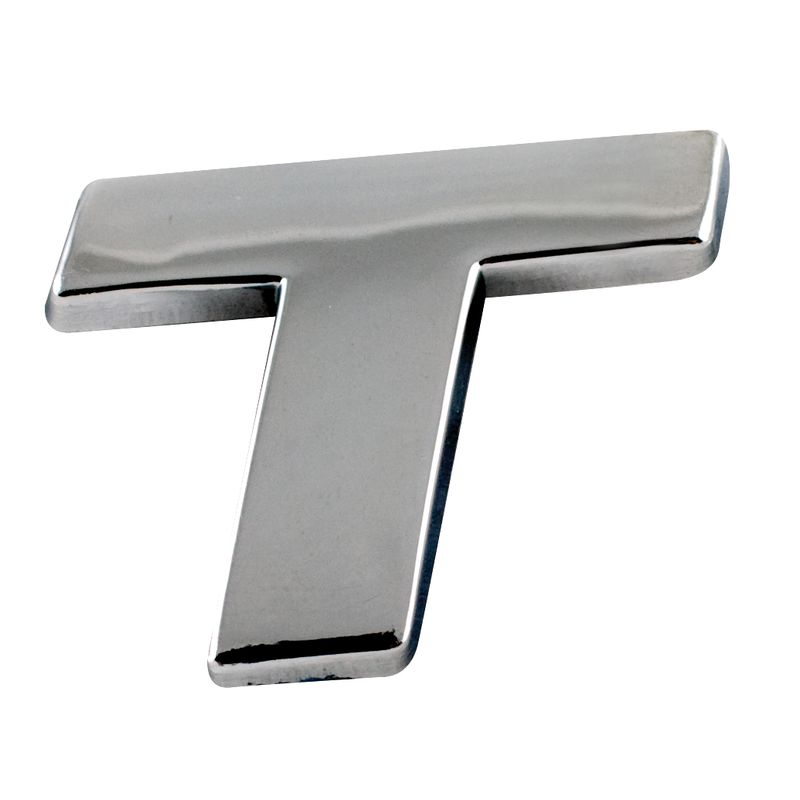 Emblema de Símbolo T, ideal para colocarlo en el trasero ACCESORIOS DE EXTERIOR del vehículo. Gracias a su base adhesiva el pegado resultará de gran efectividad pasadas las 24h, por ello no se recomienda realizar ningún lavado e impedir el mojado. Este emblema le dará a tu vehículo el aspecto deseado, gracias a su acabado cromado.