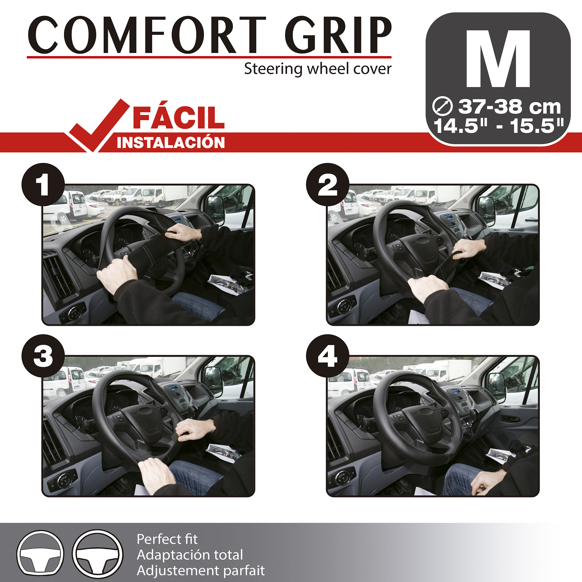 Funda para vehículos con volante de 37-38 cm de dimensión, en negro. Esta funda ergonómica le proporcionará a tu vehículo el aspecto deseado y protegerá tu volante.