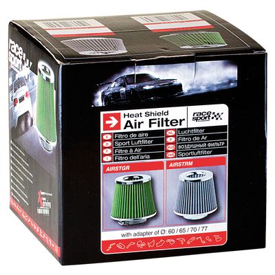 Filtro de aire para aumentar la potencia del motor a altas velocidades debido a un incremento del flujo de aire dirigido sin verse obstaculizado por curvas y cuellos de botella. Este filtro de aire dispone de 4 adaptadores a fin de colocarse de forma efectiva en cualquier vehículo y así poder disfrutar de su rendimiento y su sonido deportivo, es ideal para aquellos amantes de los coches tunning. El material con el cual está fabricado le proporciona al producto una calidad y duración garantizada.
