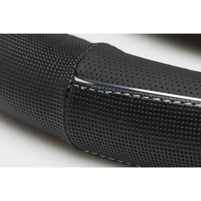 Funda para volante con bordado en diferentes tonos (azul, rojo y blanco) a elegir según preferencia, presenta un acabado de detalle de perforado en las partes laterales a fin de contribuir a la comodidad de la conducción. El material PVC con el cual está fabricada proporciona protección al volante así como un tacto agradable. Puedes darle a tu volante un toque deportivo de forma suave con esta funda.