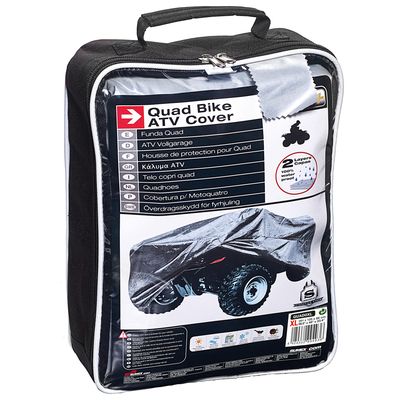 Para una mayor protección para tu Quad, Car+ ha diseñado para ti este modelo de funda en distintas medidas en las cuales escoger según el tamaño de tu quad. Su material de alta calidad proporciona un sistema de doble capa que contribuye a proteger de los rayos UVA, resina de los árboles, excrementos de aves, lluvia , hielo gracias a su carácter de impermeabilidad, así como una contribución a evitar las ralladuras. Por otro lado, dispone de un sistema de ventilación el cuya evita que se pueda producir moho a causa de largos periodos de almacenamiento. Mientras, en la zona de escape la tela es ignífuga a fin de evitar un posible deterioro causado por la calor. Una vez decidas prescindir de su uso, la bolsa de nailon con cremallera le proporcionará el almacenamiento y transporte adecuados.