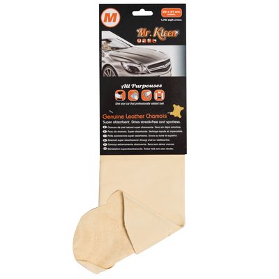 Gamuza de piel natural para la limpieza del vehículo tanto en la parte ACCESORIOS DE INTERIOR como en la parte ACCESORIOS DE EXTERIOR debido a sus propiedades absorbentes que permiten un acabado sin manchas. Este modelo se encuentra disponible en tres medidas de 32x51cm; 41x51cm ; y 50x70cm. El cuidado constante del producto permitirá una larga duración del mismo.