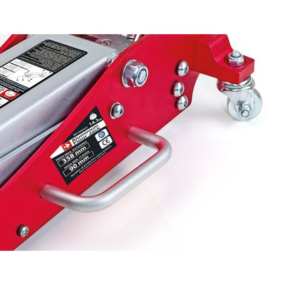 Gato hidráulico de aluminio con capacidad de soporte de hasta 1,5 toneladas, donde la elevación mínima es de 80mm y una máxima de 375mm. Este gato es capaz de elevar hasta coches con perfil bajo y permite almacenarlo gracias al poco espacio que ocupa el mango. La calidad con la cual ha sido fabricado este producto le permite destacar con respecto a los gatos tradicionales, por ello dispone de homologación TUV y GS lo cual significa que cumple las expectativas con respecto a la calidad exigida por la UE o EEUU.