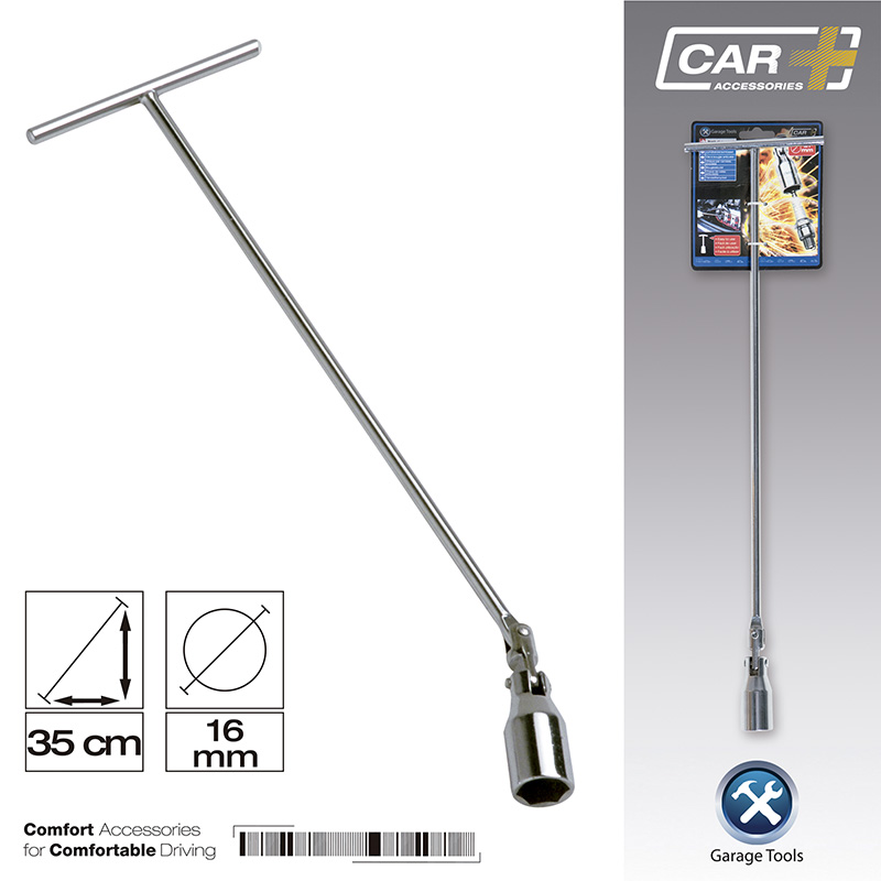 Llave bujía en diámetro 16mm o 21mm, según la medida de cabezal que necesite y 35 cm de largo. Su acabado en cromado y está fabricado con metal de calidad para que la maniobra pueda ser efectiva y sencilla.