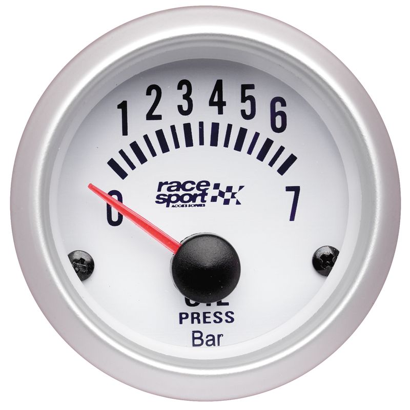 Manómetro de Race Sport para controlar la presión del aceite del vehículo a fin de estar informado de las condiciones en las cueles se encuentra el coche. Estar anticipado a lo que pueda pasar es el deseo de cualquier ACCESORIOS DE VIAJEro, por ello, este manómetro te posicionará en una posición avanzada. También podrás combinarlo con indicadores como termómetros o manómetros. Su acabado en blanco con detalles de plateado, le dará a un tu coche un toque deportivo y energético. Este manómetro de presión del aceite es de 12 v, y 52mm de diámetro.