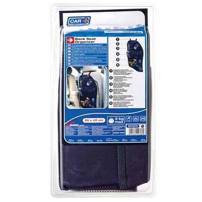 Organizador universal de color negro a colocar en uno de los asientos delantero. Este organizados dispone de 7 bolsillos que permiten colocar los objetos a utilizar durante el ACCESORIOS DE VIAJE así como dispone de dos bolsillos para portar bebidas. Es fácil de colocar, ya que sólo hay que introducirlo por la parte del reposa-cabezas mediante el sistema de velcro que permitirá su fijación.