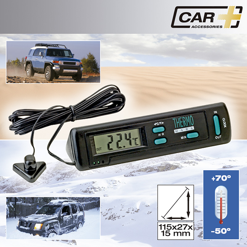 Termómetro ACCESORIOS DE EXTERIOR-ACCESORIOS DE INTERIOR para controlar y estar informado de la temperatura externa, pues gracias a este accesorio podrás saber si existe el peligro de hielo debido a su opción de aviso, ya que puede medir desde -50ºC hasta 70ºC. Puedes ponerlo en marcha conectándolo con la batería, de forma que puedas disfrutar de su funcionamiento y elegir entre las diferentes opciones disponibles como es la elección de la forma en la cual se muestra la temperatura-hora. Si tienes pensado hacer un ACCESORIOS DE VIAJE y no te gustaría verte sorprendido ante un fenómeno inesperado, con este termómetro podrás adelantarte y evitar el peligro.