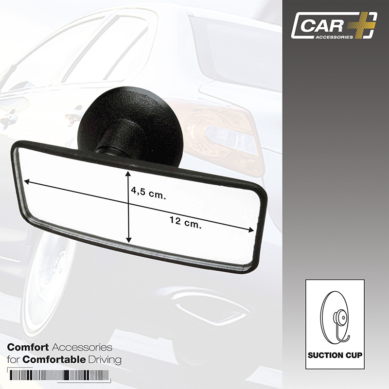 Additional mirror for the interior of your car. The flat glass measures 12 x 4.5 cm gives excellent vision and whether to see the back seats or to reduce blind spots. Comes with suction cup to fix to the windscreen and pivots to the desired angle. Should be used in addition to your original rear view mirror.