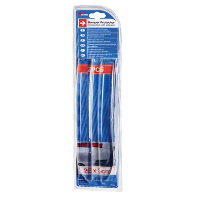 Transparent bumper protectors measuring 26 x 3 cm. 2 of per pack. Protect your car from scratches with these subtle transparent protectors. The are made of long-lasting silicon and flexible, moulding to the shape of your vehicle. Self-adhesive backing makes them easy to fit.