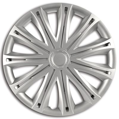 Cardboard display of 20 individually wrapped hubcaps wheel trims, model ALABAMA in silver with a classic and stylish 11 spoke design. These stylishly designed wheel trims are made of high quality ABS plastic that are long-lasting and corrosion resistant and will give your vehicle and new look by covering over the bland original wheels. Available in 13, 14, 15 and 16 inches. Easy to fit on any wheel of the corresponding size of all car models using the retaining ring to keep them securely in place. Durable and stylish product.