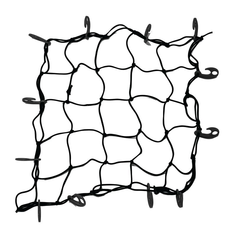 Elastic cargo net with 12 hooks. The net measures 86x115cm when loose to keep your luggage safely secured. Net and hooks make of strong long-lasting materials. Ideal for car roofs and pick up trucks etc.