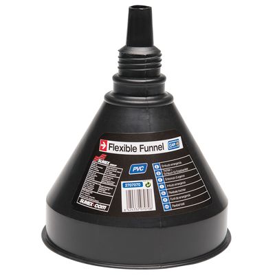 Funnel with built-in filter and detachable flexible tube. Ideal for storage in you car. Hard plastic material will last for ages. Can be used for all liquids including petrol and oils.