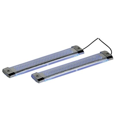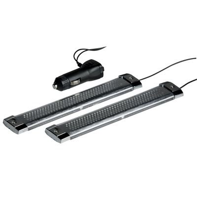 LED Strips to decorate the sill and floor of your vehicle. Available in blue LEDs with aluminium mesh. The strips and hard-wearing and stay in place thanks to their strong adhesive backing. They can be connected via the cigarette lighter socket.
