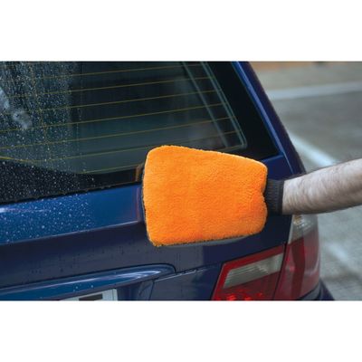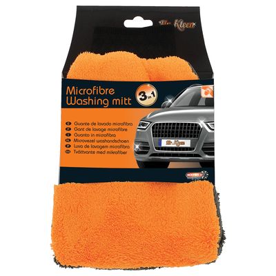 Wash mitt that traps and cleans dirt and will give your car a shiny finish without streaks. The orange microfibre side is for the vehicle’s bodywork. The grey side is for cleaning the wheels. Finally the coarser sides is for cleaning difficult to remove dirt. Simply wash in the washing machine and use again.