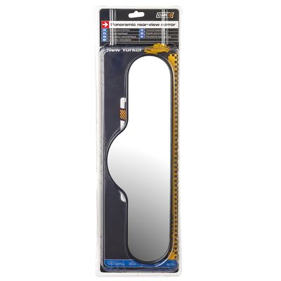 Panoramic rear-view New York Taxi style mirror that thanks to its convex shape and large size gives an enhanced wide-angle viewing range eliminating the majority of possible blind spots. Attaches easily fit over original mirror using elastic bands. Mirror size: 370 x 110 mm.