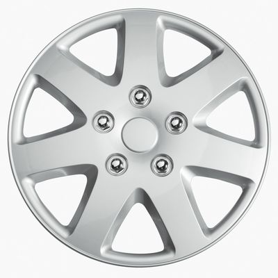 Set of 4 wheel trims, model SILVERSTONE in silver with a classic and stylish 7 spoke design. These stylishly designed wheel trims are made of high quality ABS plastic that are long-lasting and corrosion resistant and will give your vehicle and new look by covering over the bland original wheels. Available in 13, 14, 15 and 16 inches. Easy to fit on any wheel of the corresponding size of all car models using the retaining ring to keep them securely in place. Durable and stylish product.