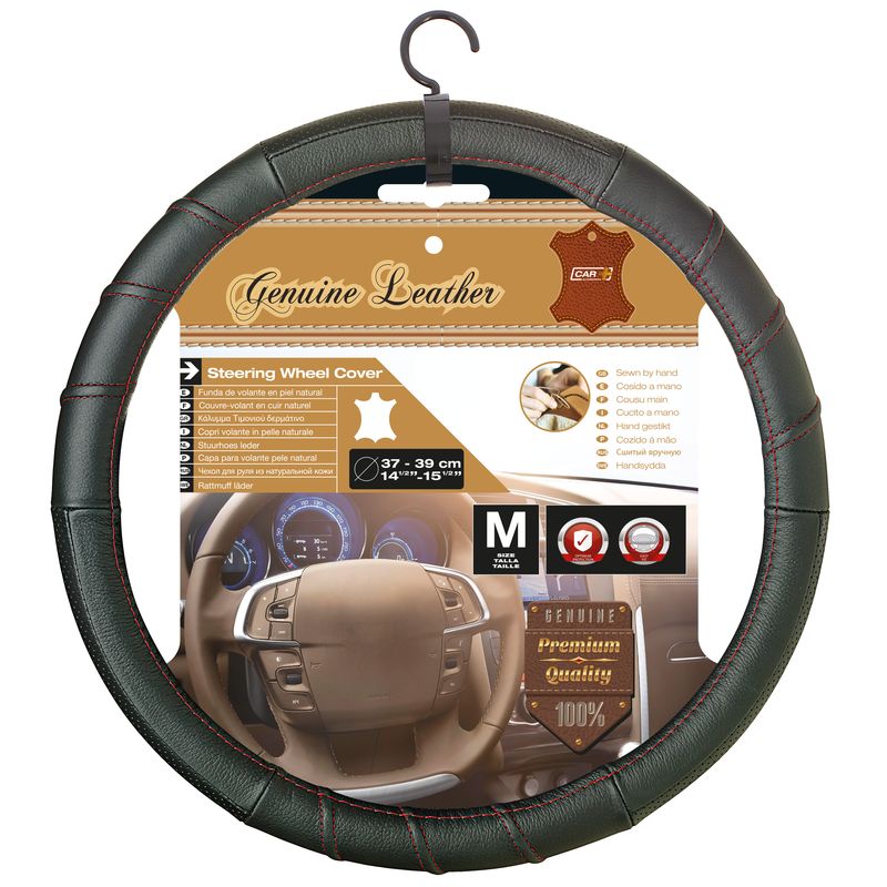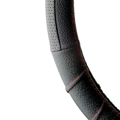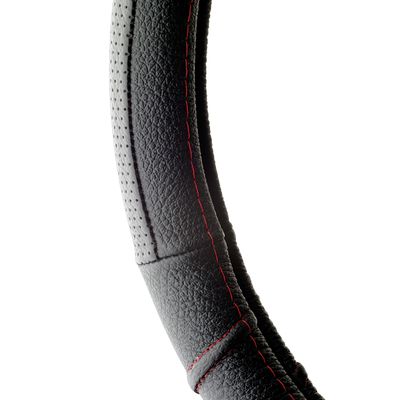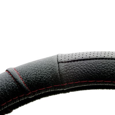 COUVRE VOLANT 37-39CM 100% CUIR NOIR SP ROUGE