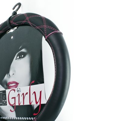 / COUVRE VOLANT 37-39CM NOIR PINK CROSSED