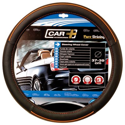 / COUVRE-VOLANT 37-39CM « ORANGE LINE » NOIR – INT.CAOUTCHOUC VIERGE