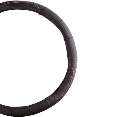 COUVRE-VOLANT CUIR NOIR FIL ARGENTE 37-39CM