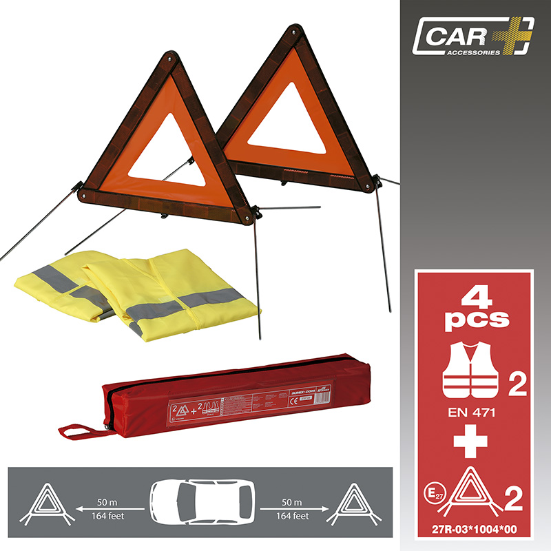 KIT 2 TRIANGLES + 2 GILETS DE SECURITE HOMOL. E11